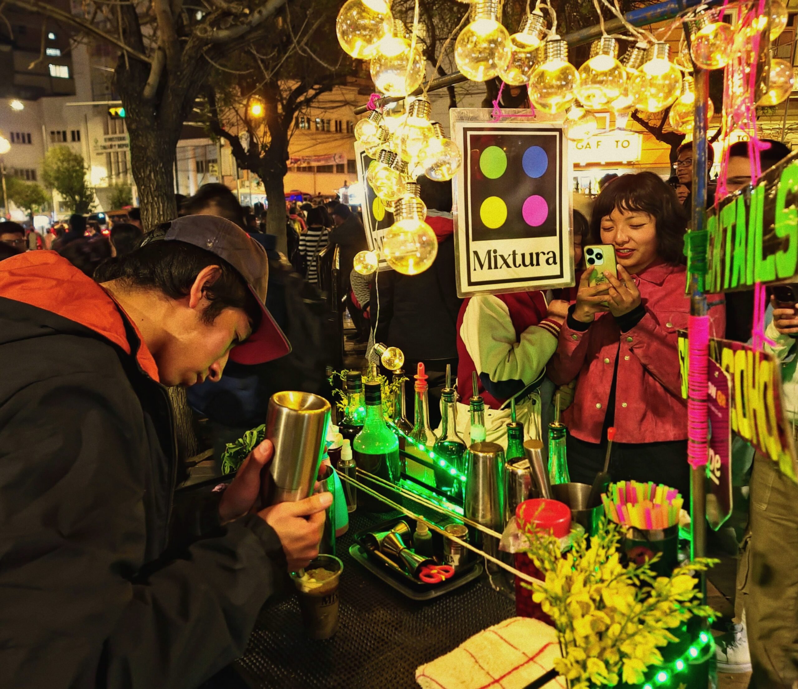 Queríamos llevar la coctelería a ese mismo terreno: a la gente, la calle, al momento. Así nació Mixtura, un colectivo de bartenders que trabaja con carritos diseñados para llegar a cualquier lugar, llevando la experiencia de la coctelería donde normalmente no llega.